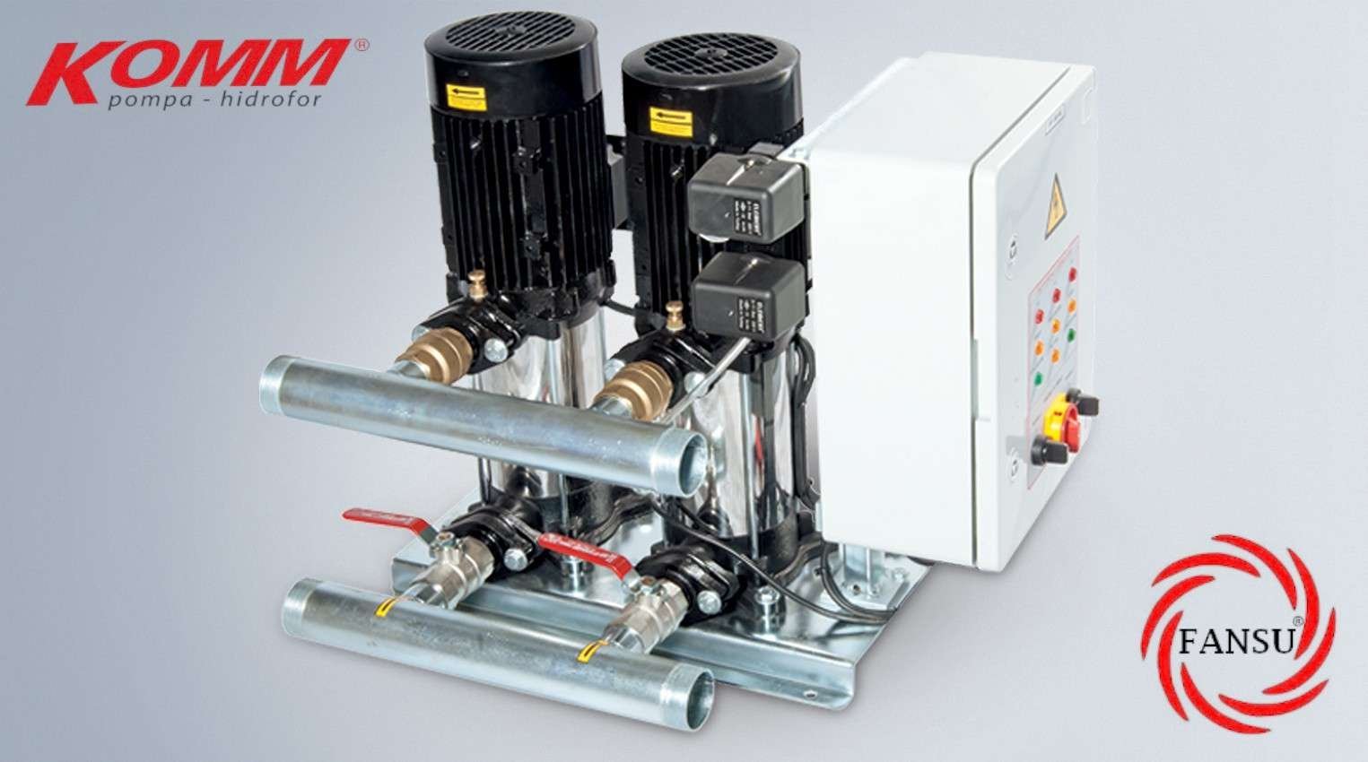 İki pompalı paket hidroforlar ortak bir kaide üzerine montajı yapılan her pompanın emme hattında vana basma hattında çekvalf, basınç şalteri, manometre bulunan hidroforlardır. Hidroforlarda kullanılan elektrik kumanda panosunda faz hatası, faz sırası kontrolü ve susuz çalışmaya karşı 5 m seviye flatörü standarttır. Hidrofor panolarında sıra değiştirme, rotasyon özelliği bulunmaktadır.