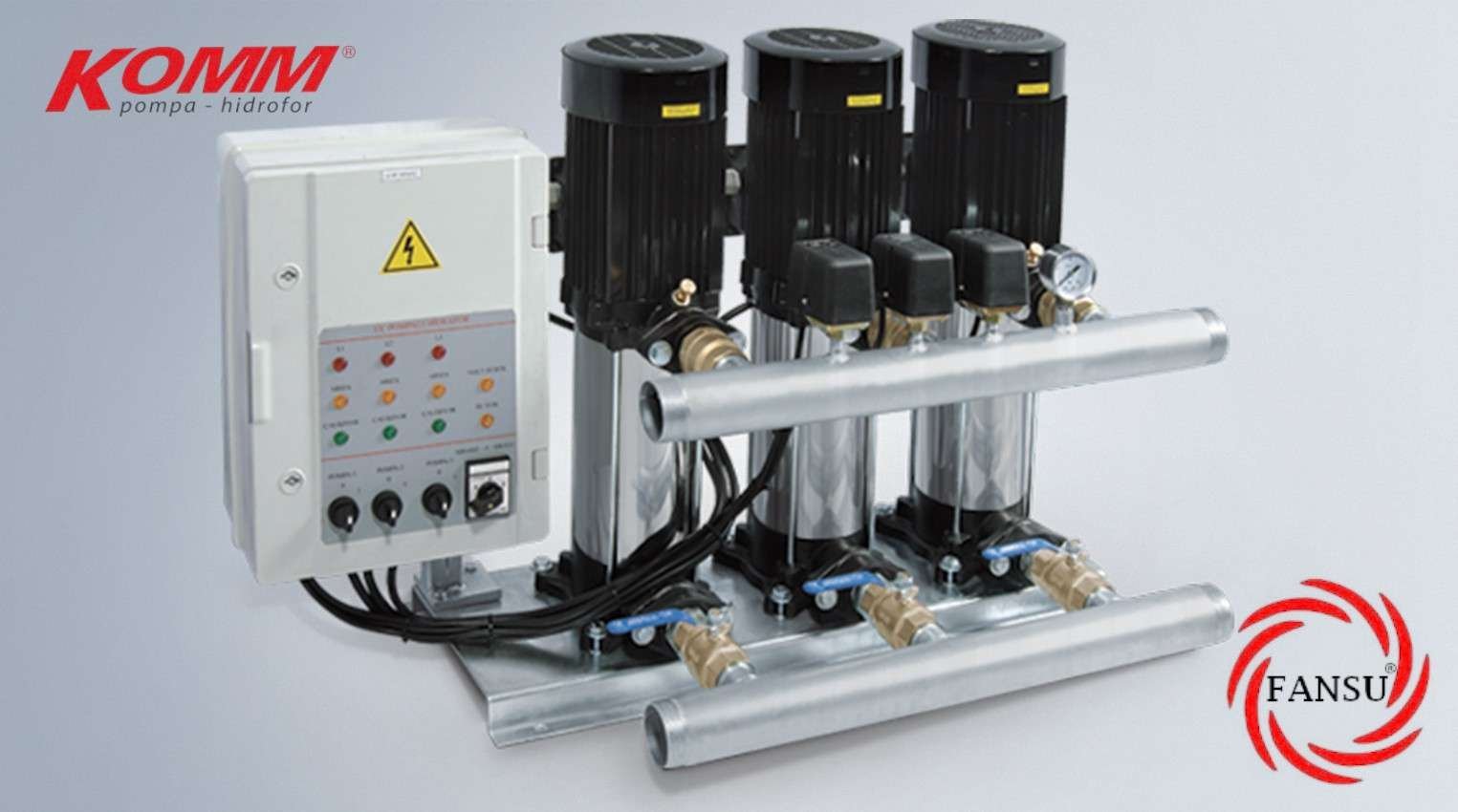 Üç pompalı paket hidroforlar ortak bir kaide üzerine montajı yapılan her pompanın emme hattında vana basma hattında çekvalf, basınç şalteri, manometre bulunan hidroforlardır. Hidroforlarda kullanılan elektrik kumanda panosunda faz hatası, faz sırası kontrolü ve susuz çalışmaya karşı 5 m seviye flatörü standarttır. Hidrofor panolarında sıra değiştirme, rotasyon özelliği bulunmaktadır.